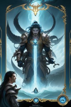 <lora:游戏概念7:0.5>,masterpiece,best quality,1boy,solo,8K,HDR,a man wearing demon armor,holding a trident in hand,treading on the three headed dog of hell,behind it is the mercaba logo, emitting a faint blue light,looking at the camera seriously,as a tarot card,ruan jia movie poster,heise-lian yan fang,olchas logan cure liang xing,hades,concept art | feng zhu,fantasy book cover,the star tarot card,metatron,tarot card the chariot,dark fantasy character design,knight of cups,lobo,louis royo,epic fantasty card game art,portrait of hades,dark fantasy sci fi,