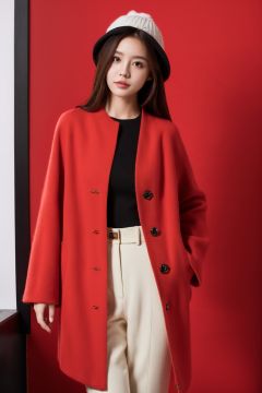 Best Quality, masterpiece, ultra-high resolution, (photo: 1.4) , a beautiful girl in a plush hat, thick clothes, long bare legs, red coat, winter, realism, HD 16K