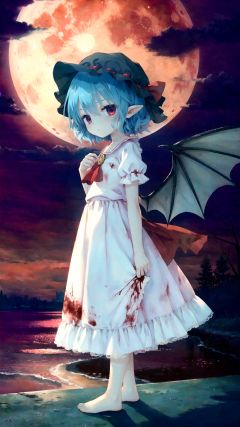 finely detail, Depth of field, (((masterpiece))), ((extremely detailed CG unity 8k wallpaper)), best quality, high resolution illustration, Amazing, intricate detail, (best illumination, best shadow, an extremely delicate and beautiful), レミリア・スカーレット, full_moon, ((red moon)), night, outdoors, blood, bare_tree, (((Blood red sky))), bat swarm, ((((remilia_scarlet))), Remilia Scarlet, (((1 loli))), (((9 years old))), ((little girl)), ribbon, Blue Hair, short hair, disheveled hair, bat wing, DECAYING BAT WINGS, White Dress, red_moon, wings, solo, bloomers, hat_ribbon, barefoot, red_eyes, looking_at_viewer