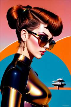 front profile full body Photography, in font of a rusty billboard, a hip hop 80's British model woman with 50's haircut, in spltc and large sunglasses, 80 degree view, art by Sergio Lopez , Natalie Shau, james jean and salvador dali <lora:leather jacket with spikes_v1:1> <lora:mttck_v3:1>