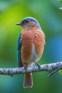 (blue bird),(sitting on a tree branch),(close up),(photorealistic),(detailed feathers),(vivid colors),(soft sunlight),(nature backdrop),(bokeh),(ultra-detailed eyes),(sharp focus),(realistic textures:1.1),(fine details),(crisp outlines),(high definition),(lush green leaves),(intense blue sky),(slightly blurred background)