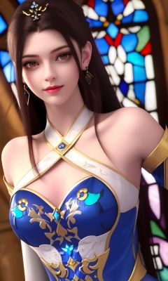 (,1girl, ,best quality, )<lora:334-DA-仙武传-上官婉儿:0.7>,, (close-up portrait),(upper body:1.22),(realistic:1.11),(Photo-referencing),HDR,Studio Lighting,Soft Lighting, (symmetric beautiful detailed eyes),Sparkling eyes,red eye shadow,(long eyelashes), a slender petite little girl,Delicate muscle lines,(Skinny body),(solo:1.5),( looking at viewer:1.22),The white shiny skin, (smirk:1.2),(dynamic pose),(arms behind back),arms at sides, (very long payot),(Absurdly long Brown straight hair:1.22),parted bangs, (floating hair), (jewelry:1.17), necklace, earrings,(colorful:1.27),(stained glass background),(dress:1.17),,