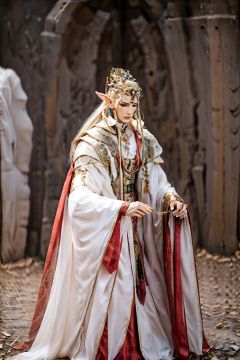 masterpiece,best quality,pili\(muou\),puppet show,1boy,(full body:1.5),shoes,artist name,beads,blurry,blurry background,bracelet,cape,circlet,cloak,closed eyes,closed mouth,cloud,cowboy shot,crown,dress,earrings,elf,expressionless,facial mark,fantasy,fingernails,forehead jewel,<lora:pilimuouxi-000016:0.6>,
