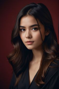 photographic of a girl, 20 years old, long hair,dark theme, soothing tones, muted colors, high contrast, (natural skin texture, hyperrealism, soft light, sharp),red background,simple background, BREAK, 35mm photograph, grainy, professional, 8k, highly detailed, Hasselbald 50mm lens f/1.9,[by ethan for CGArt Mayfly model]