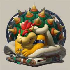 best quality, highly detailed,masterpiece,ultra-detailed,illustration, Create a futuristic and cyberpunk world that embodies the essence of the art of science fiction. <lora:Bowserxl:1>, Bowser is sleeping