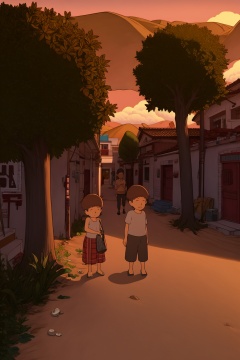 (masterpiece:1.3),best quality,highres,extremely detailed CG,perfect lighting,8k wallpaper,,red sunset, calm ocean, gentle breeze, towering palm trees, distant mountains, golden sand, seagulls soaring, shells scattered, beach umbrella, colorful beach towels, beach chairs, coolers, beach volleyball, children building sandcastles
