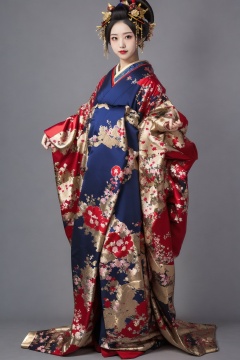 wsoiran,1girl,headpiece,(full body:1.1),ornate,oversized clothes,facing viewer,simple background,