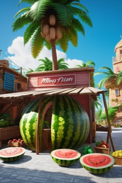 4k resolution, intricately detailed, trending on artstation, ((best quality)), ((highly detailed)), masterpiece, scenery, no humans, giant Watermelon,