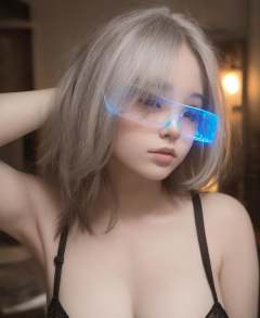 1girl, best quality, masterpiece, ultra high res, (photorealistic:1.4), 1girl, looking at viewer, cyber_glasses, glowing, upper body, <lora:cyber_glasses-07:0.8>, bright lighting, (chiaroscuro:1.3), (Random:1.3), fishtail braid, silver hair, monolid eye shape, light blue eyes, medium breasts, firstdate outfit, dusty old attic filled with trinkets and heirlooms, sexy