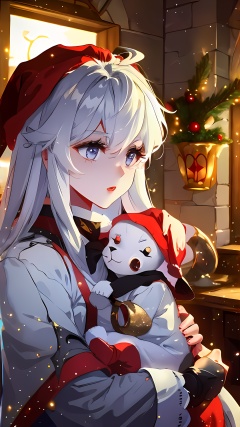 a dark gothic, White dragon baby wearing a red Christmas hat, in a golden Christmas cup. surrounding by dark gothic room, soft cinematic lighting, highly detailed, 8k