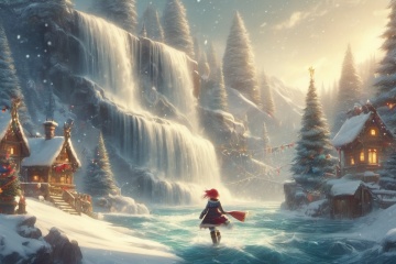 Christmas Fantasy World, 1girl, water_fall, 16k, render, close_up
