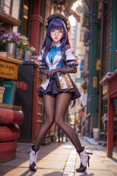 sfw,1girl,(solo:1.2),<lora:2细节SYK_Mild detail adjuster_V1.0_256(MAX):0.75>,(safe_pos:1.05),<lora:主题mhyo崩坏-佩拉pela-v100-000028:0.6>,pela,glasses,hat,long hair,blue eyes,bangs,long sleeves,elbow gloves,skirt,pantyhose,high heels,, <lora:3坏手修复GoodHands-beta2:0.85>,