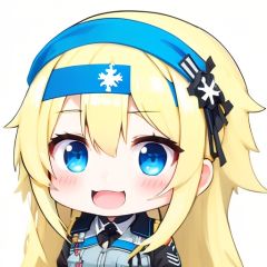 <lora:pack1-000010:1>,(masterpiece,best quality,ultra_detailed, highres, absurdres:1.2),?,suomi \(girls' frontline\), 1girl, blue eyes, solo, ?, blonde hair, long hair, hairband, ??, snowflake hair ornament, white background, hair ornament, chibi, simple background, open mouth, smile