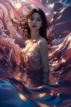 sd mai, piao, 1girl, solo, dress, brown hair, long hair, breasts, water, parted lips, looking at viewer, realistic, lips <lora:飘piao:0.8>