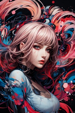 masterpiece, best quality, ultra high res, 1girl, (abstract art:1.4), bleeding color, visually stunning, beautiful, evocative, emotional, side view,colored sclera, brown eyes, ,light pink hair,