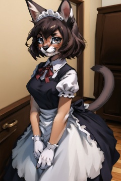 masterpiece, best quality, looking at viewer, furry cat girl,maid,brown hair,caracalcat,caracal,ningmao, <lora:Caracal:0.7>