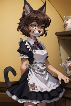 masterpiece, best quality, furry cat girl,kid,maid,brown hair,caracalcat,caracal,ningmao, <lora:Migunov2:1>  <lora:Caracal:0.6>