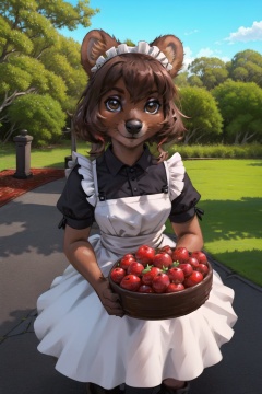 masterpiece, best quality, looking at viewer, outdoorsfurry girl,maid,brown hair,quokka, aidaishu <lora:output_name:0.4>