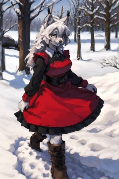masterpiece, best quality,canadalynx, lynx, shanmao, sheli,looking at viewer, furry girl,white hair,long hair,maid,snow,outdoors,run<lora:Lynx:0.5>