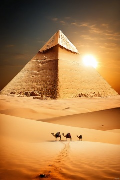 pyramid,desert, outdoors, sunset,no humans, UFO