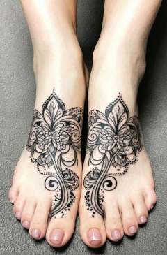 Ornemental  black grey abstract arabesques fleurs tattoo  foot