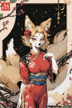 masterpiece,highres,furry fox girl,blonde,chinese dress, hair ornament, anicent china