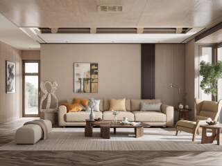 Lao Chen, modern beige, Photos of interior, sofa, window, ceiling, curtain, best quality, masterpiece, high quality, real, realistic, super detailed, full detail, 8K,