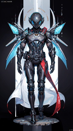 jiqi, art style, power armor, armor, 1boy, helmet, solo, male focus, standing, full body, weapon, glowing, science fiction, full armor, tail