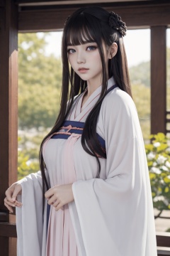 masterpiece,best quality,highly detailed,Amazing,finely detail,extremely detailed CG unity 8k wallpaper,score:>=60,gufenghanfu,1girl,looking at viewer,white dress,hanfu,long sleeves,wide sleeves,standing,<lora:lihua1-000006:0.7>,upper body,large breasts,