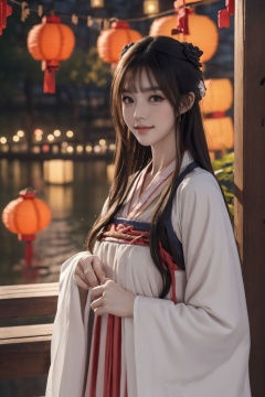 Cinematic Lighting,panorama,dynamic_angle,((new year)),((lantern festival)),fantasy,realistic,reality,night,smile,facing viewer,cinematic_angle,masterpiece,best quality,highly detailed,Amazing,finely detail,extremely detailed CG unity 8k wallpaper,score:>=60,gufenghanfu,1girl,looking at viewer,white dress,hanfu,long sleeves,wide sleeves,standing,<lora:lihua1-000006:0.7>,upper body,large breasts,<lora:capricornus _前任回忆录_V2.5:0.7>,
