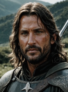 photo of the warrior Aragorn from Lord of the Rings, film grain, 8k hd
