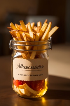(masterpiece, top quality, best quality, official art, beautiful and aesthetic:1.2) ,cover art, a Letterism french fries in a jar, intricate, highly detailed, realistic