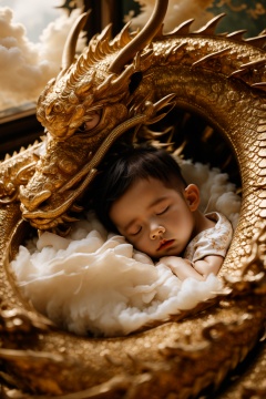 lbbz,1boy,closed eyes,male focus,cloud,sleeping,dragon,<lora:lbbz:0.8>,, masterpiece, best quality,