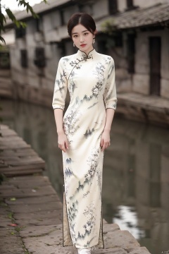 (1girl:1.3), (best quality, masterpiece, ultra high resolution),(photorealistic:1.3), (realistic:1.3), depth of field,(full body:1.2), (day:1.2), (cinematic lighting:1.2), qipao