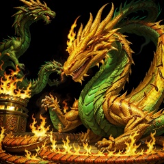 best quality,ultra-detailed,realistic,dragon,eating,hot dog,fiery breath,vivid colors,detailed scales,sharp teeth,dark and ominous,mythical creature,crispy bun,flame-grilled sausage,spicy ketchup,burst of flames,smoky atmosphere,roaring in hunger,curved claws,intense gaze,scaly texture,ferocious appetite,fantasy setting,with a twist,high-res image,mesmerizing eyes,dragon's tongue,craving for more,fantasy feast,lush greenery,fierce and majestic,food in the air,bloody red,extraordinary scene,smoke rising,stunning composition,mouthwatering,contrast of colors,sense of danger,lit by fire,unforgettable moment,Dragons Welcome food stall