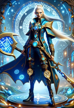 hyper detailed masterpiece,DonMMy51ic4lXL, female catkind, , war scythe , runes <lora:DonMMy51ic4lXL-v1.1-000006:0.8>