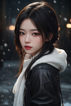 photographic of a girl\(asian\), clear facial contour, upper body, looking at viewer, grunge style, BREAK, It's snowing, Fog.BREAK, 35mm photograph, grainy, professional, 8k, highly detailed, Hasselbald 50mm lens f/1.9, [by ethan for CGArt Mayfly model]