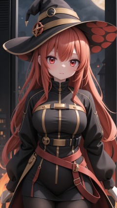 Red eyes, evil, golden, shiny, gold hair,High detailed ,midjourney,perfecteyes,Color magic,urban techwear,hmochako,better witch,witch, witch,Long hair,free style,horror (theme)
