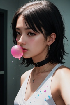 1girl, isometric, shukezouma, octane render, hdr, (hyperdetailed:1.15), (soft light, sharp:1.2), aesthetic, (Argentinian |Cuban |Colombian |Mexican) 20 years old woman, (detailed facial features), gorgeous face, grunge style, standing in her messy bedroom, pale skin, wearing eyeliner, grainy, pastel goth, scene hair, (emo girl), teased hair, wearing bracelets, wearing choker necklace, ((detailed face)), selfie, rainbow painting drops, paint teardrops, girl made up from paint, entirely paint, splat, splash, paint bulb, paint drops, broad light, backlighting, bloom, light sparkles, chromatic aberration, (bubblegum Vaporwave aesthetic), Rashmikasdxl