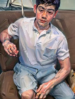1boy,freud,oil painting,brushwork,solo,full body,on a sailboat,<lora:fuluoyideV3:0.9>,in one's clothes,masterpiece,best quality,HD,8K,