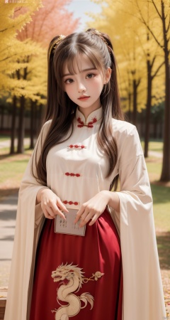 (Masterpiece, best picture quality, master works), epic composition, a girl, (Chinese dragon pattern | Dahongpao), Chinese New Year, Happy New Year, may you come into a good fortune,red theme, takei film, 2girl, jiajingwen,onegai teacher, dilireba, chenqiaoen, yangchaoyue, child,moyou, Light master,2child