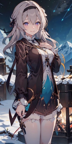 remote mountain, campfire, (warm:1.1), cozy, stars, serene atmosphere,