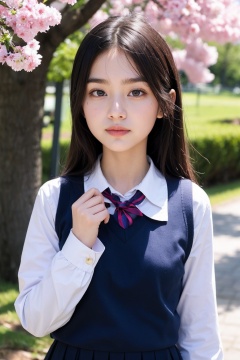 1girl,upper body,outdoor,school uniform,blossoms,falling_petals,