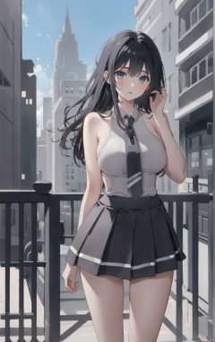 1girl,standing,city,building,outdoor,university,long hair, big breasts, JK