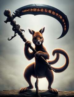 kangaroo holding a DonM5cy7h3 scythe, single blade,<lora:DonM5cy7h3-000006:0.8>