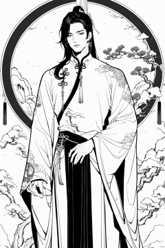 xingxiu,line style,line art,1boy,male fouce,long hair,chinese clothes, cowboy shot,(((masterpiece,best quality))),((good structure)),((Good composition)), ((clear, original,beautiful))
