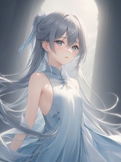 as7033,((chinese dress)), 1girl, solo, looking at viewer, long hair,  very long hair, small breasts, hair between eyes, bare shoulders, bangs, <lora:jianbai-lora:0.8>,, (((masterpiece,best quality))),Fantastic, imaginative, emotional, emotional rendering, brightly colored,ultra high res, Dynamic curves, active visuals, emotional colors, artistic sense, artistic colors, emotional colors, visual guidance,illustration,CG ,unity ,wallpaper, Amazing, an extremely delicate and beautiful, sharp focus,aerial perspective background,((good structure)),((Good composition)), ((clear, original,beautiful)), (clear details, clear light,clear structure),(high res raw,4K,8k),official art,,