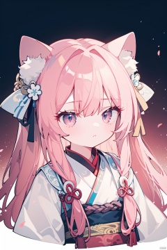artist:tianliang duohe fangdongye,1girl,long hair, hanfu,pink hair,cat ears