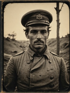"Trench Gorger", at Sunrise, Selective focus, Ambrotype, close-up,
