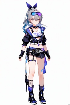 score_9,score_8_up,score_7_up,best quality,masterpiece,source_anime,8k,best quality,masterpiece,(ultra-detailed),(high detailed skin),symmetrical,(full body),white background,standing,looking at viewer,(solo),hand on hip,,yinlang, bronya zaychik, eyewear on head, grey eyes, grey hair, long hair, drill hair, gloves, jacket, shorts, fingerless gloves, navel, mesh socks,gloves,blackdress,blacksingle thigh high,earrings,jewelry,(white background, simple background),(beautiful_face),((intricate_detail)),clear face,((finely_detailed)),fine_fabric_emphasis,((glossy)),full_shot, hquan,purple eyes<lora:EMS-323771-EMS:0.800000>
